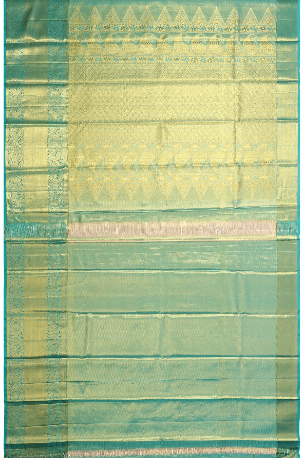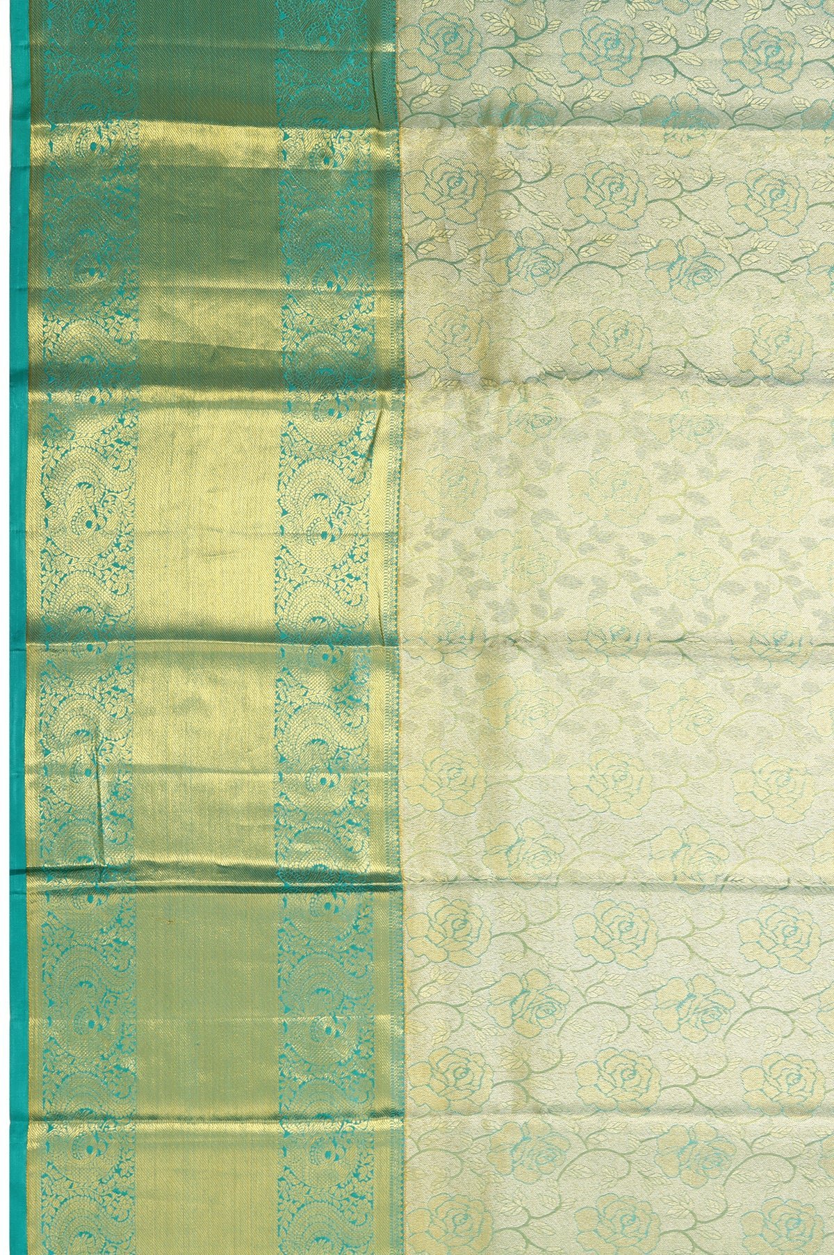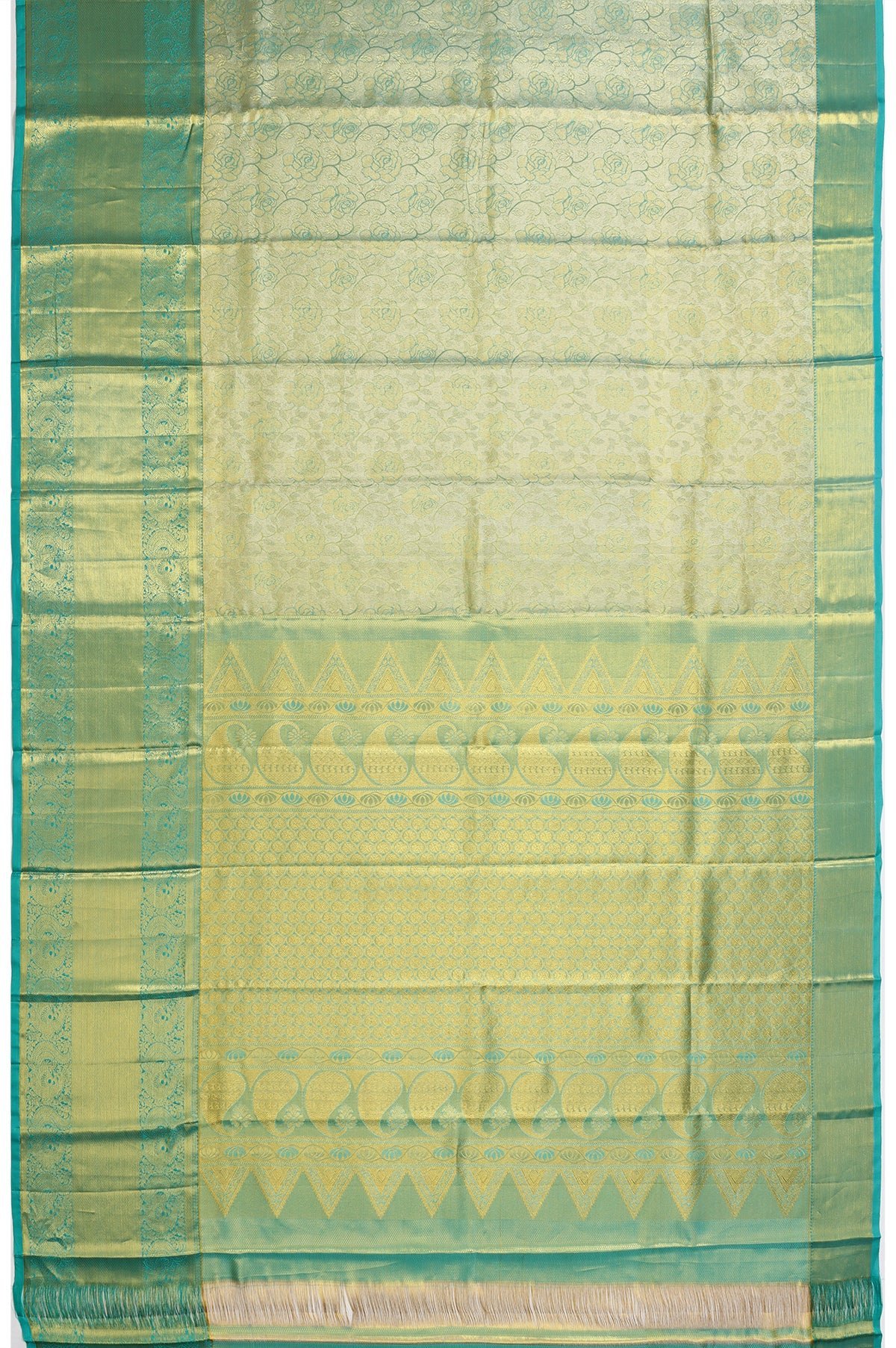 Gold Kanchipuram Silk Saree with Floral Design and Sea Green Border