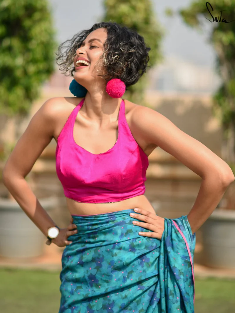 Product Type: Blouse Type: Padded Fabric: Handloom chanderi silk and Viscose Blouse Length: 0.38 m (38.10 cm) Neckline: Halter Strap Wash care: Dry Wash