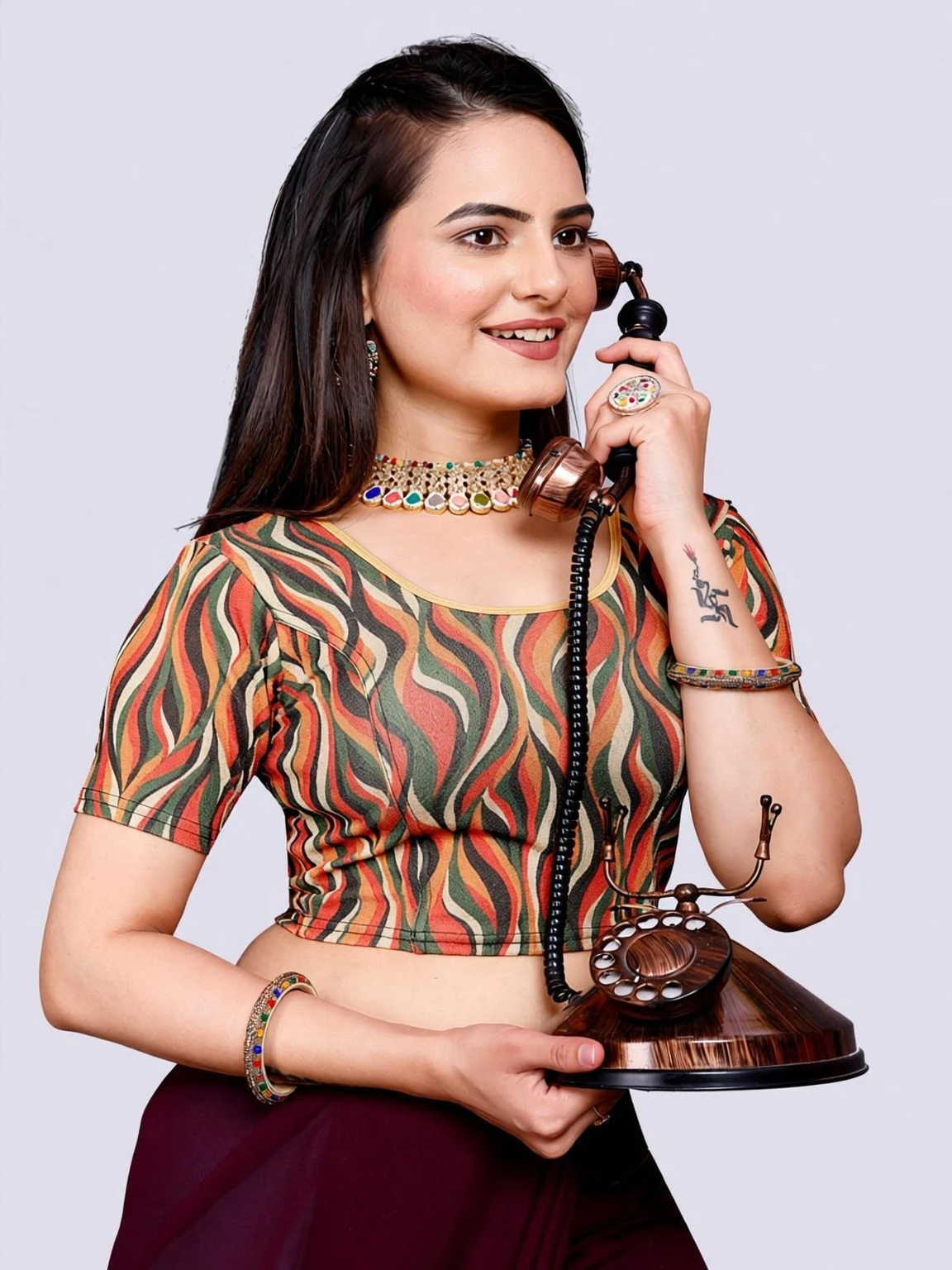 Elevate your wardrobe with this chic blouse crafted from stretchable Lycra fabric. The round neck design offers a classic and flattering silhouette, while the half sleeves provide a touch of elegance and versatility. The Lycra material ensures a comfortable, form-fitting shape that moves withyou, making it perfect for both casual and formal occasions. Embrace style…