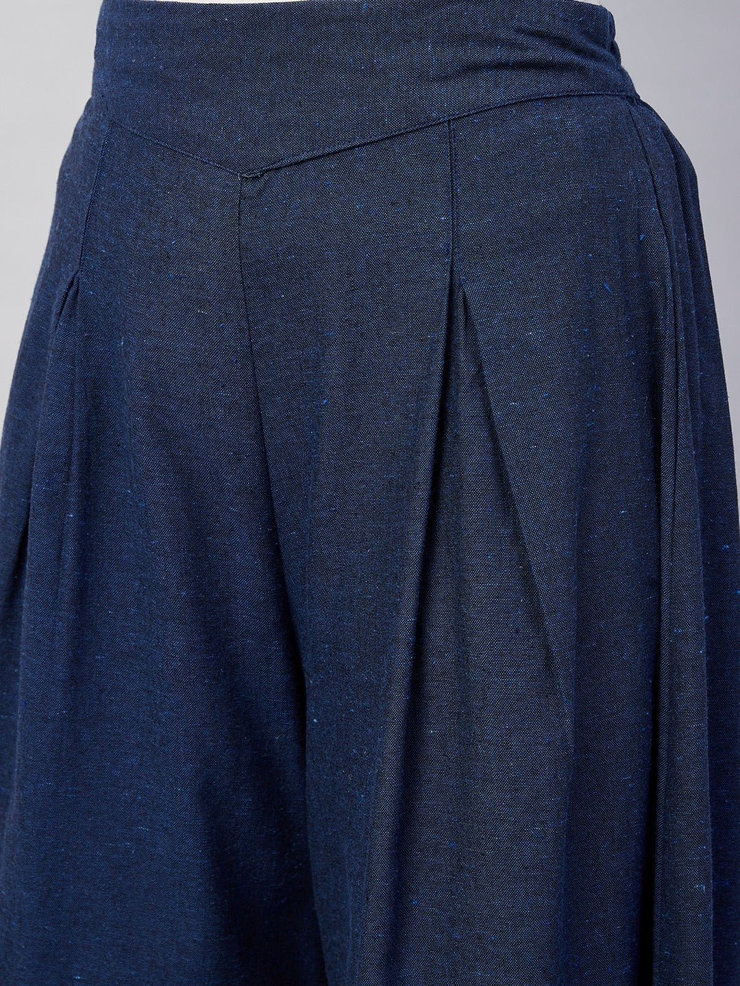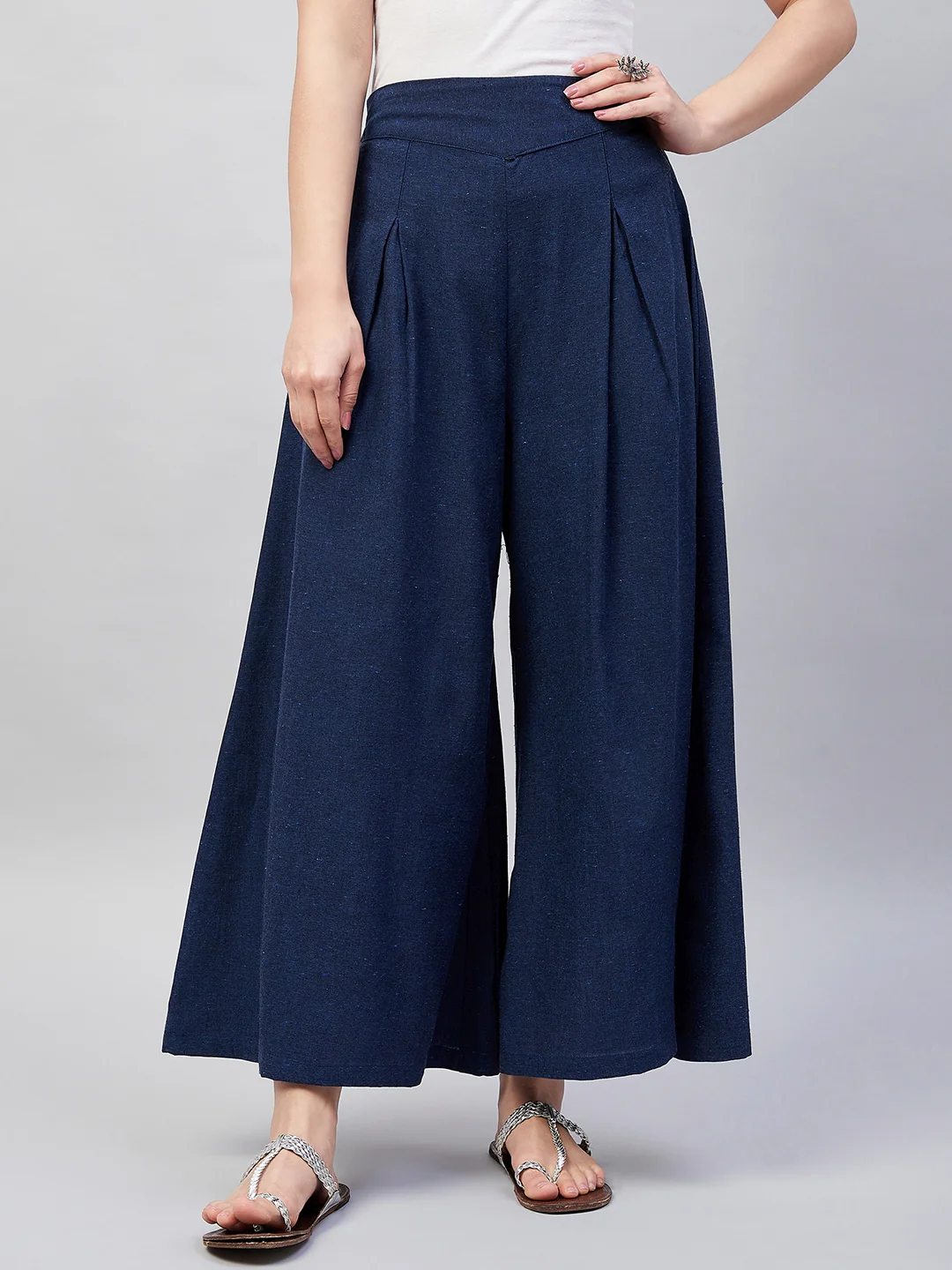 Embrace the spirit of summer with this pair of cool, gray-colored handloom palazzos. These cropped palazzos are made with original cotton fabric and showcase pretty front pleats.