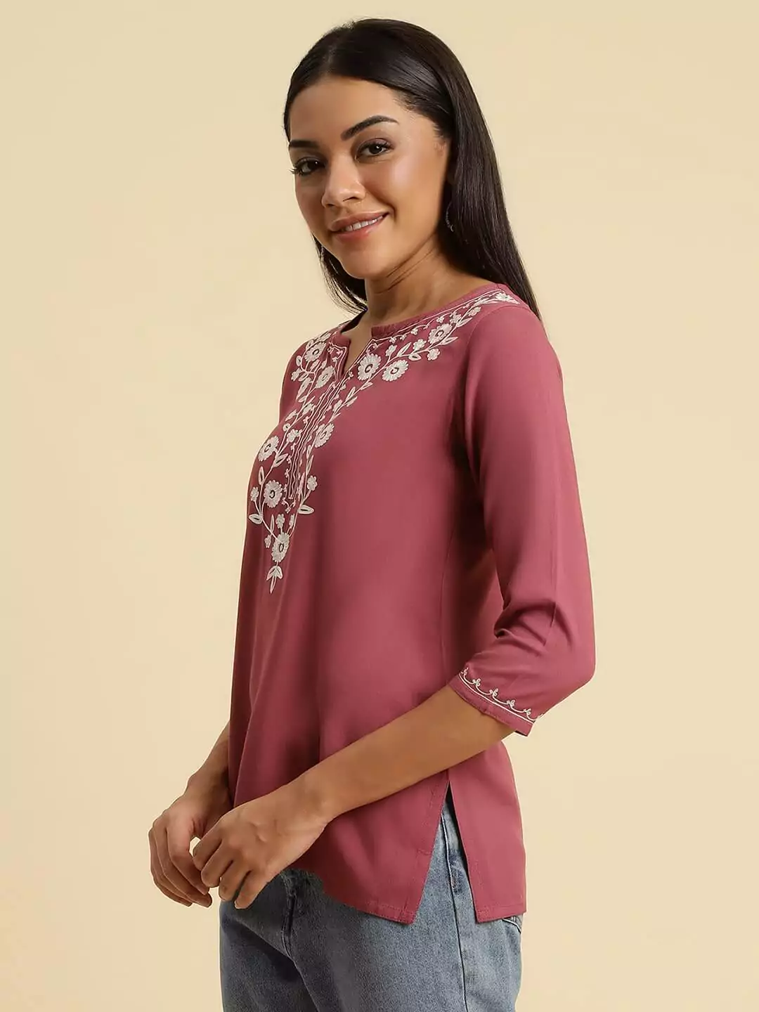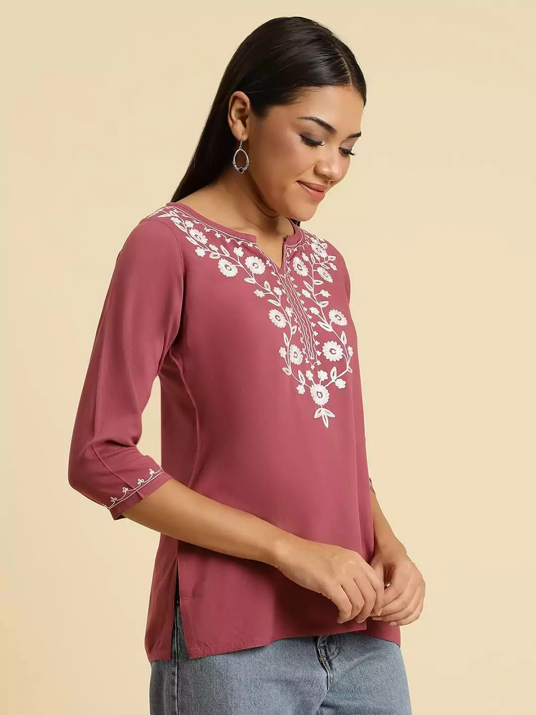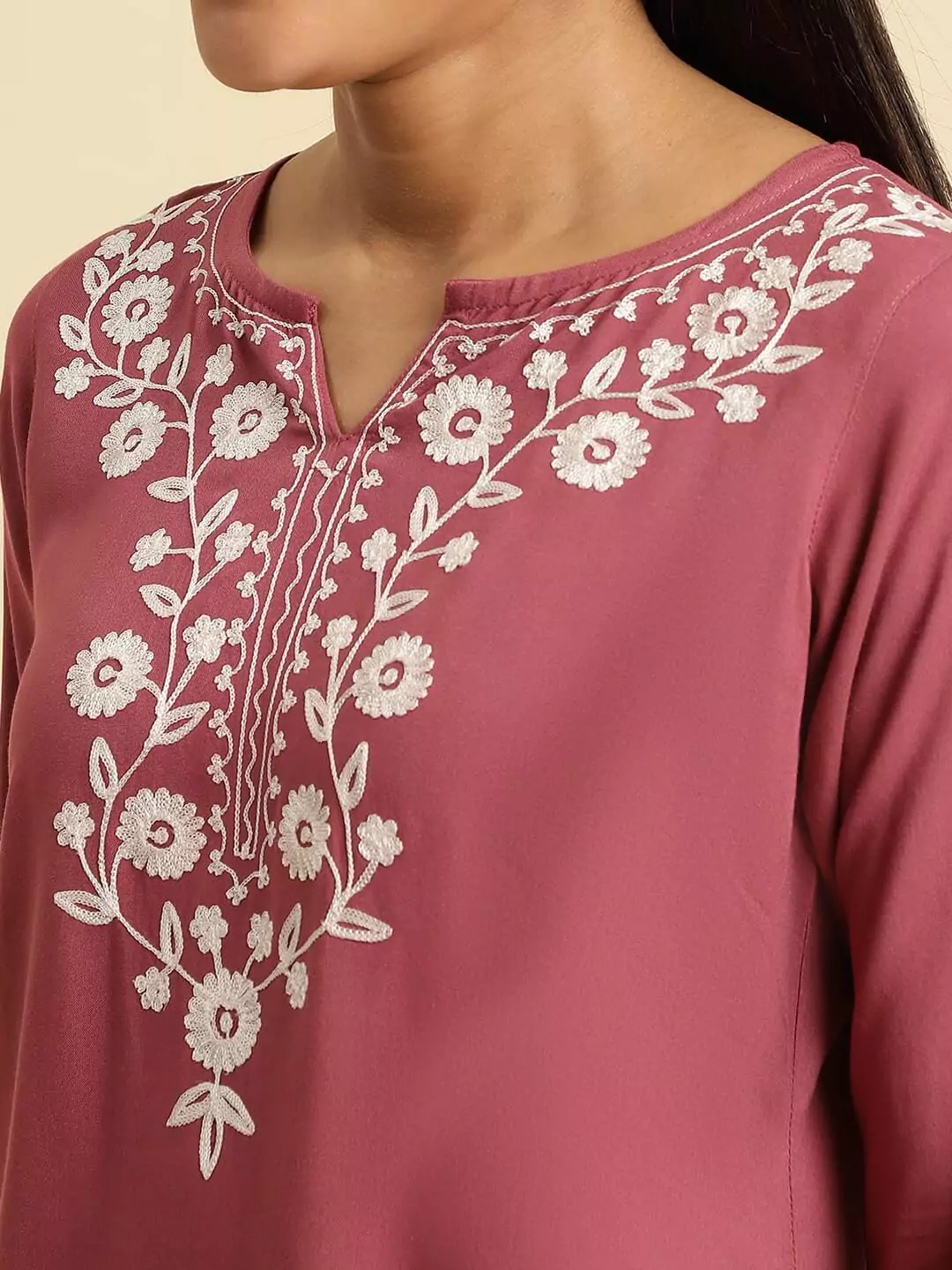 Wild Orchid Pink Kashmiri Silk Work Short Kurti