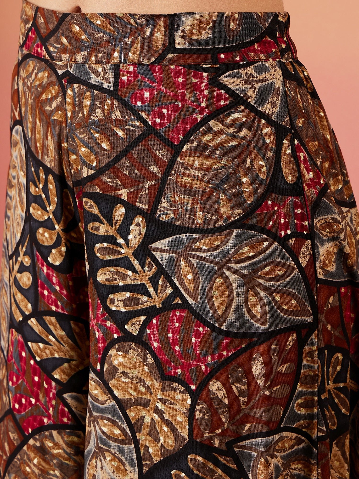 Rayon Black Grey Leaf Print Foil Palazzo
