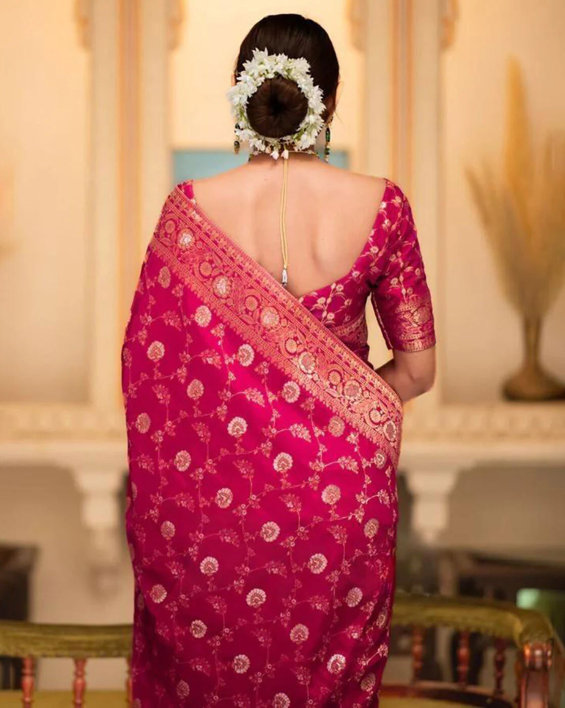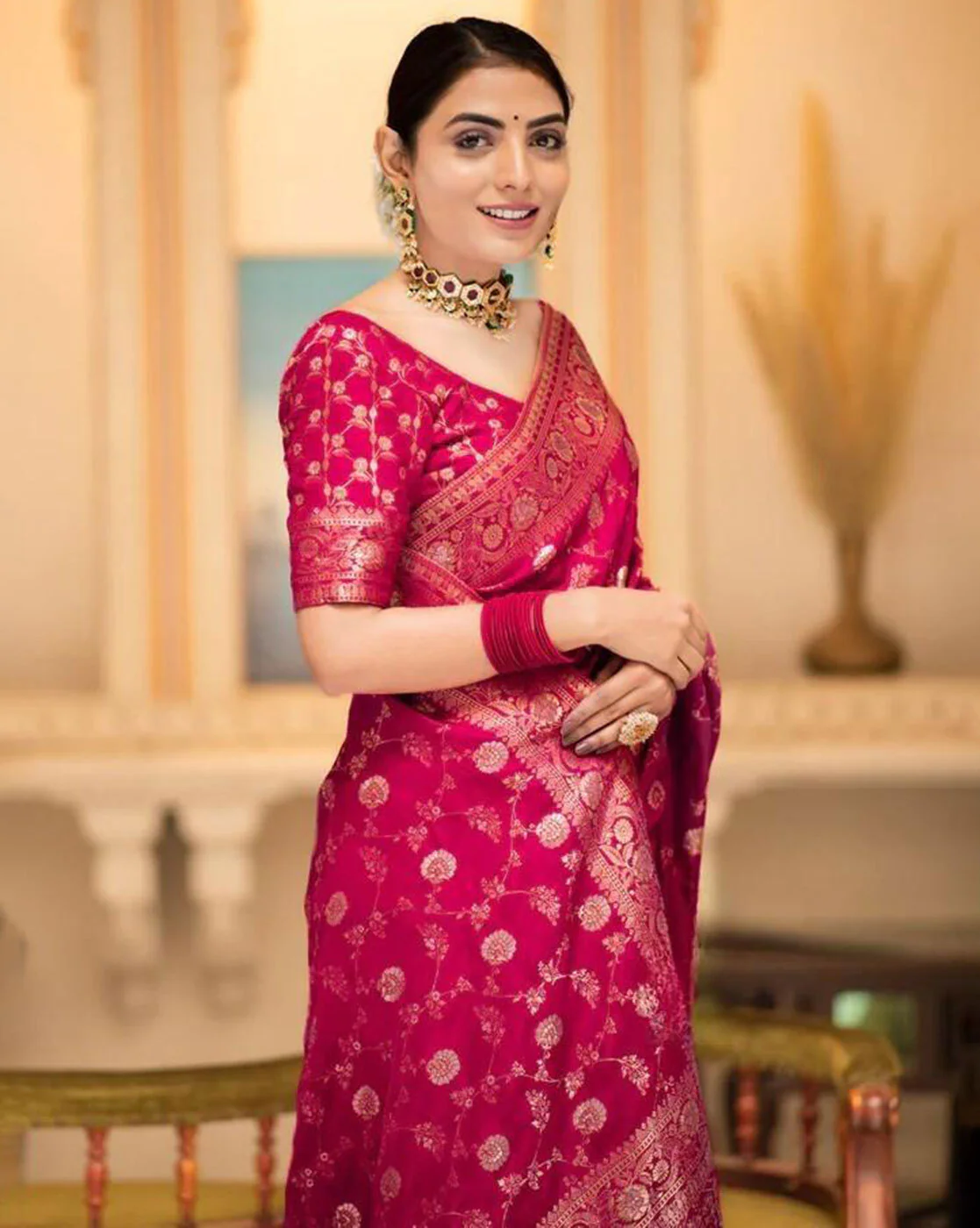 Blouse piece length: 0.8 m Saree length: 5.5 m Package contains: 1 saree with blouse piece The last image gives a detailed look of the blouse piece that comes with this saree (The model is wearing a blouse from our in-house wardrobe) Dry clean Silk